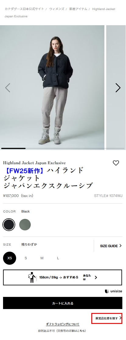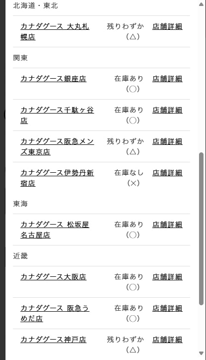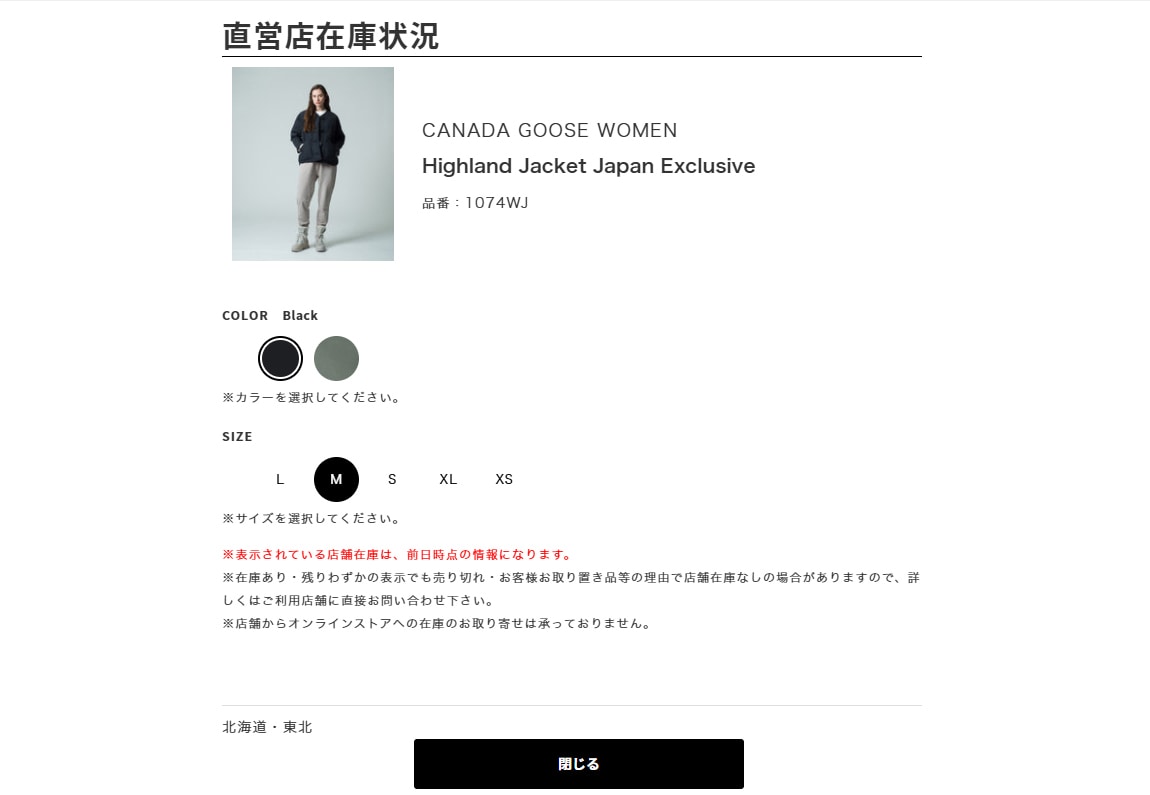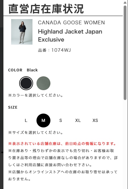 直営店在庫表示とは、カナダグース直営店の在庫状況をお調べするサービスです。