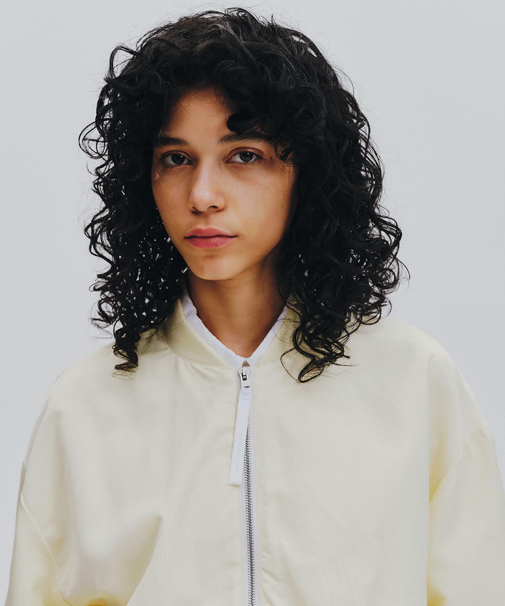 「アイリス ジャケット」は、なめらかな質感と構築的なフォルムが印象的なボンバージャケットです。軽やかに羽織りながらも、風を遮り、小雨にも対応する実用性を備えています。