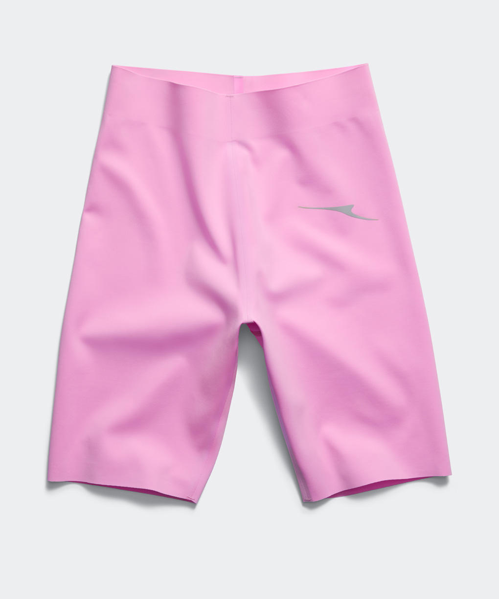 コレクション全体を通して、軽量なカラーブロックのウィンドブレーカーやリフレクター仕様のキルテッドジャケット、そしてタイトなジャージー素材が、パフォーマンスの向上に留まらず、シルエットとリズムを鮮やかに形作ります。自然現象から着想を得たブライトピンク、ダークアンバー、アズライトブルー、ブライトコーラルの色彩は、鋭いコントラストと精密なディテールを通じてその存在を主張。移り変わる気候を想定した設計が、身体を制限することなく保護し、周囲の環境との完璧な調和をもたらします。