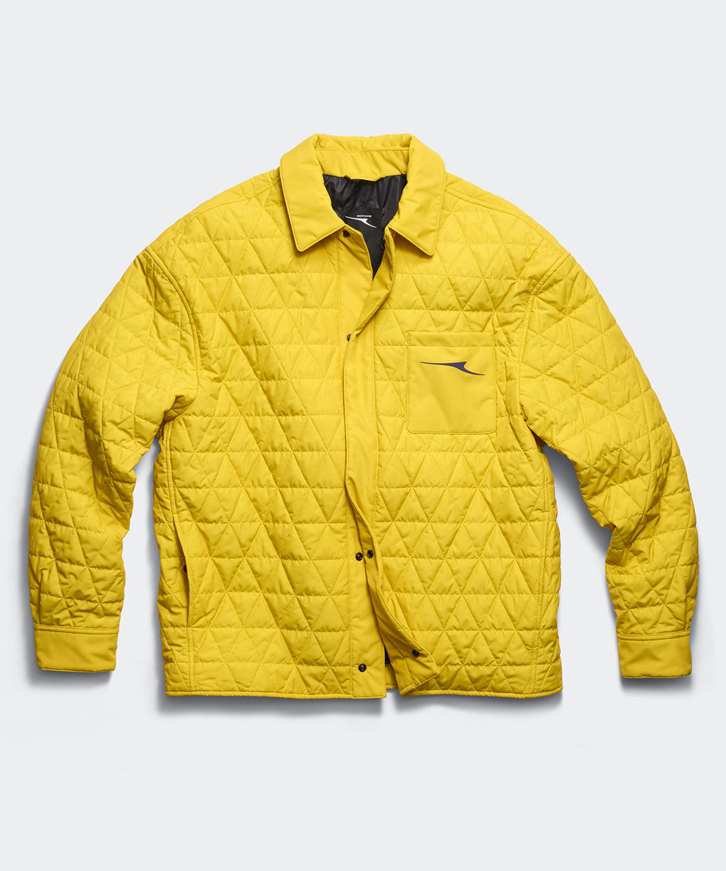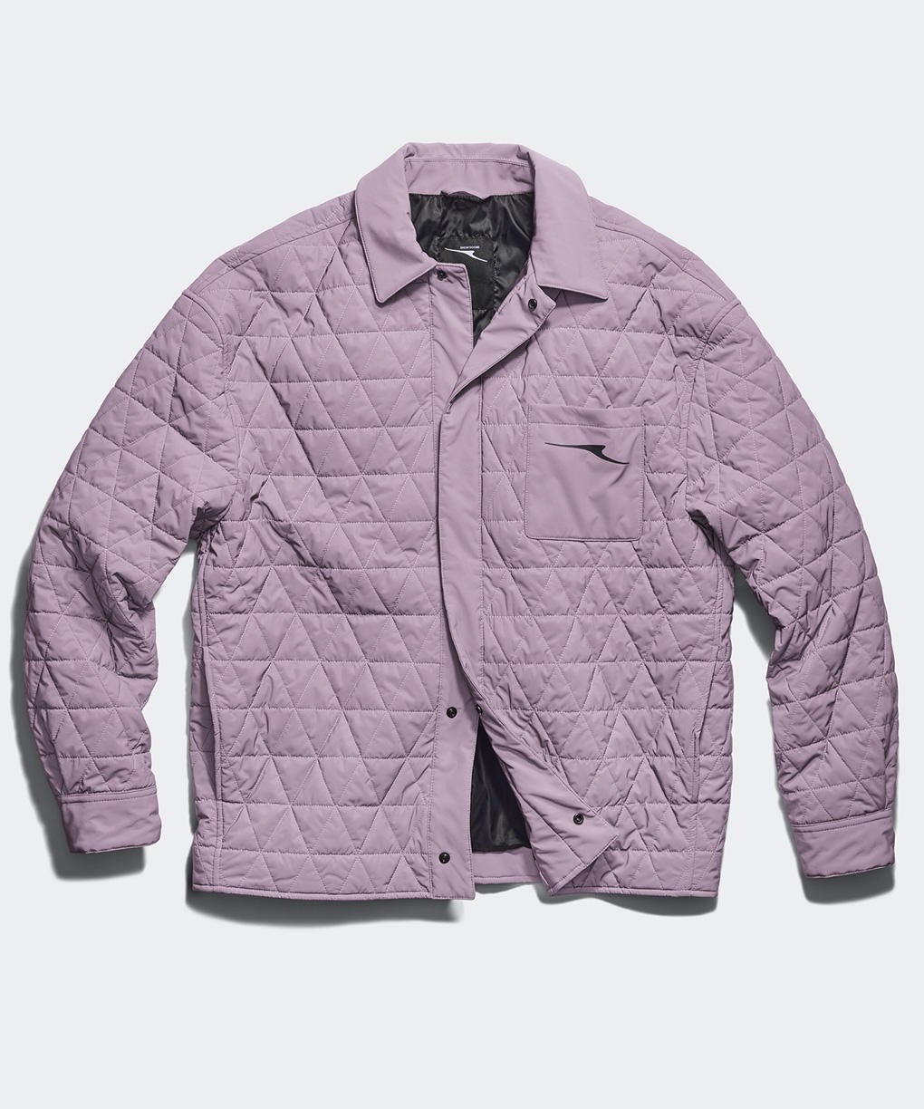 クラシックなダイヤモンドキルティングが目を引く、羽のように軽やかなオーバーシャツ。撥水性に優れた上質なシルクブレンド素材とインサレーションが、快適な着用感を維持します。前立てやポケット、袖口に配した隠しメタルスナップボタンが、ミニマルで洗練された美しさを際立たせます。